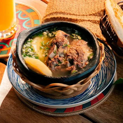 Chorizo, chicharrón, maicito, pollo 🍗 desmechado, carne desmechada 🥩, plátano maduro y patacón